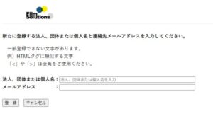 続いてお客様の法人、団体または個人名、メールアドレスを入力します。